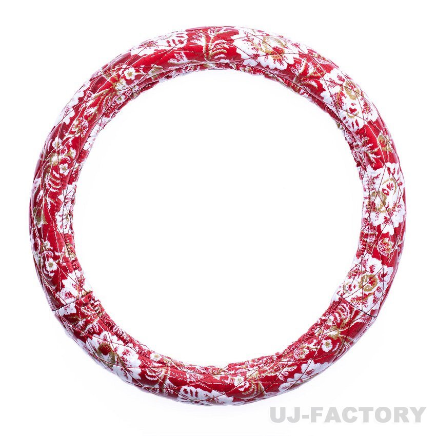 - ★MIYABI/新格子/金華山・シングルキルト ハンドルカバー(ビニール付)レッド/2HSサイズ(45cm~46cm)★車内をドレスアップ!