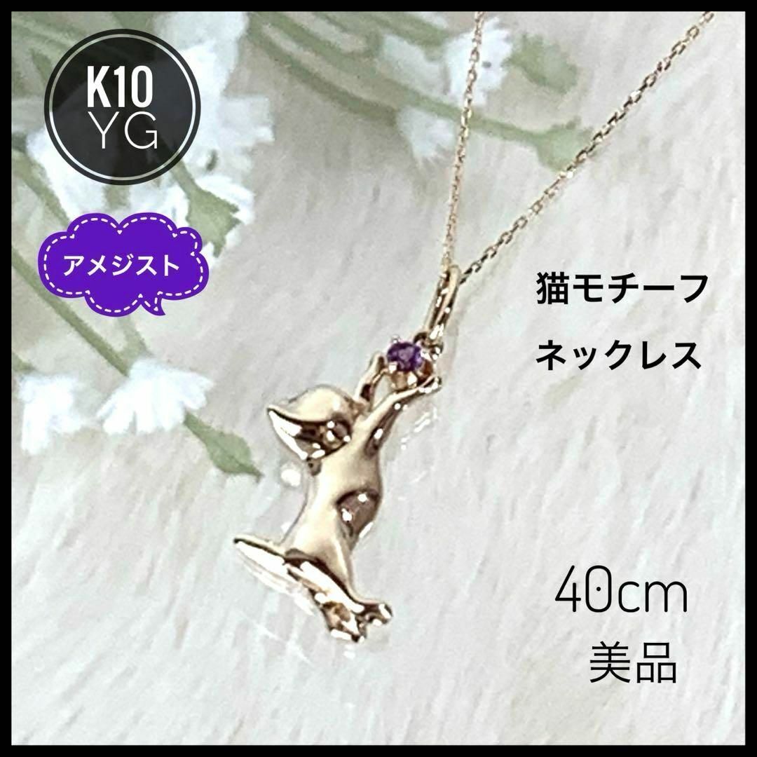 - 【美品】 K10 YG アメジスト 猫モチーフ ペンダントネックレス 40cm レディース