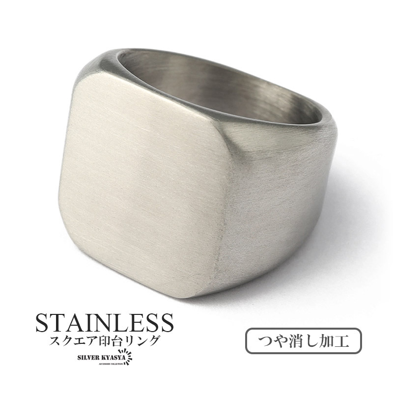 - (29号) 高品質ステンレス 印台リング つや消し スタンプ 指輪 ゴールドリング シルバー ブラック スクエア 四角 ごつめ