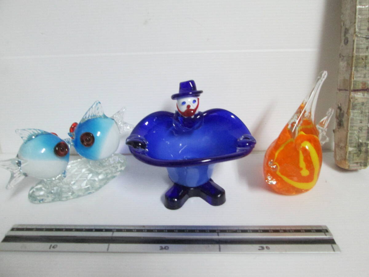 - ガラス製 ピエロ(顔にラインが傷ではないです) 灰皿 小物入れ+エンゼルフィッシュ+魚 3体で