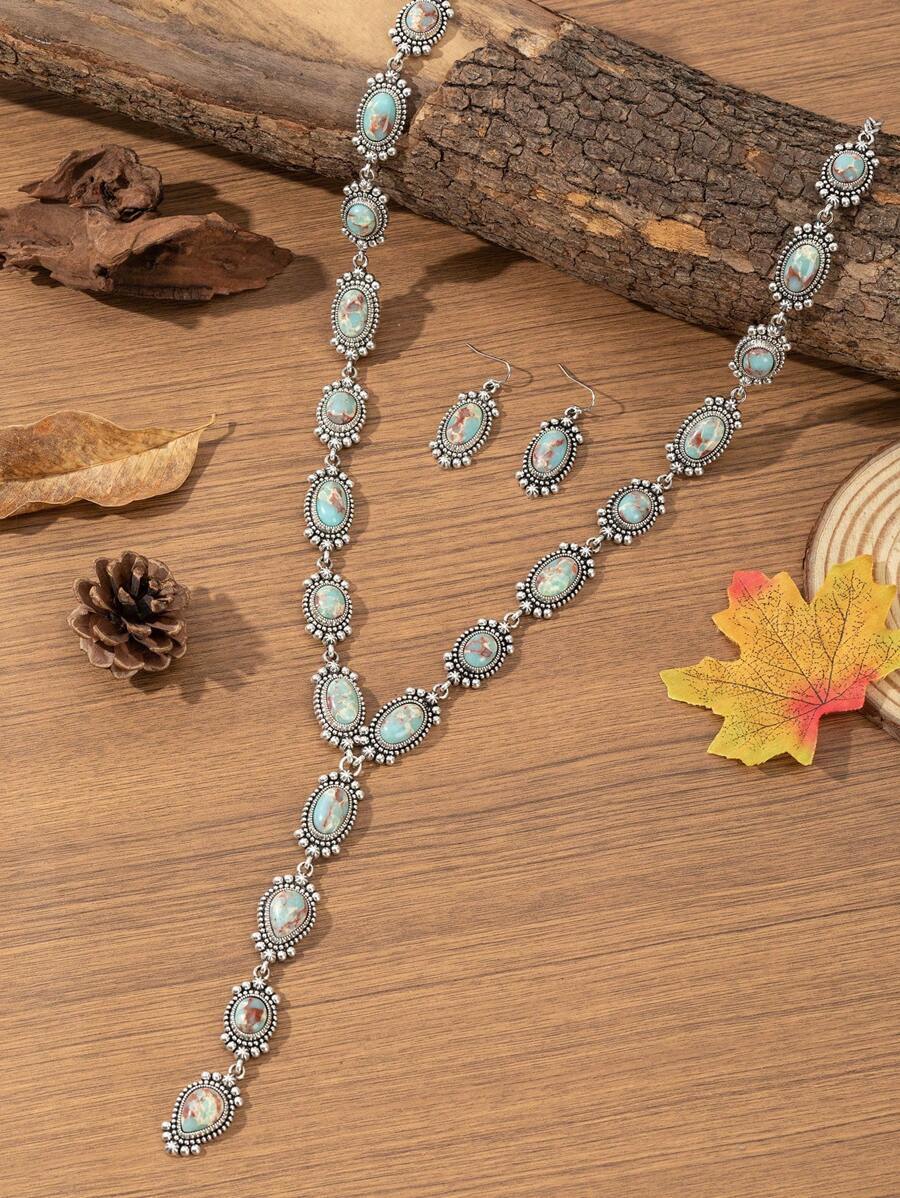 - ジュエリー レディース セット 1セット 女性 ビンテージ ボヘミアン ウエスタンスタイル ネックレス&ピアス、フォーンストーンジ