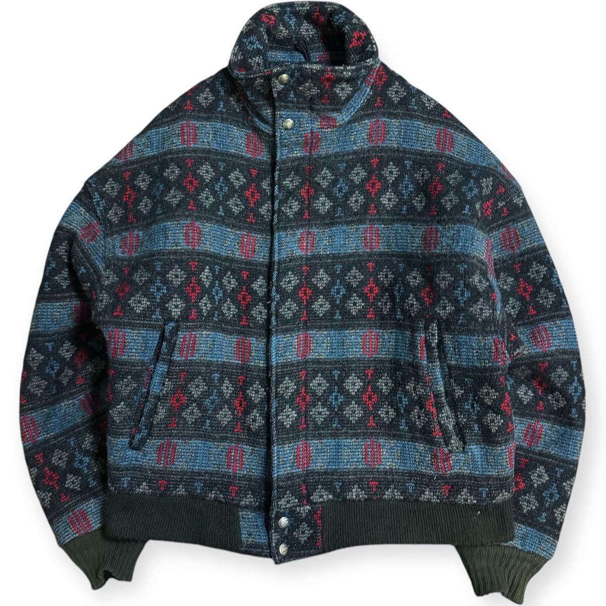 - 稀少 WOOLRICH 80s USA製 ヴィンテージ 総柄 ノルディック ウール ブルゾン 短丈 Mサイズ