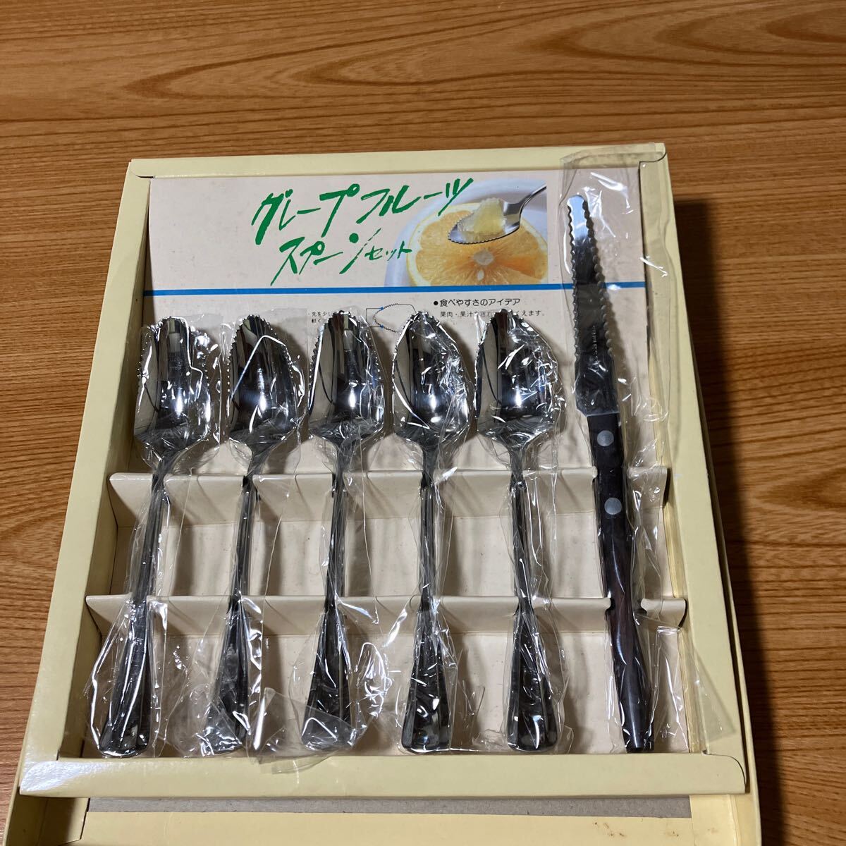 - グレープフルーツ スプーン.ナイフセット 18.8ステンレス製,日本製(レトロ)