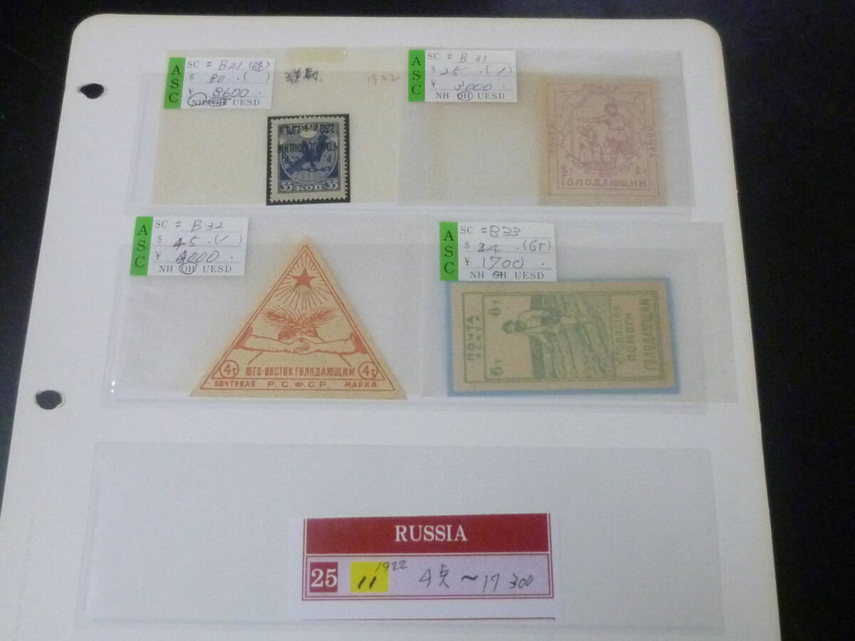 - 25F S 附加金11 ロシア切手 1922年 SC#B21(逆刷)・B31-34 記念 計4種 未使用NH・VF