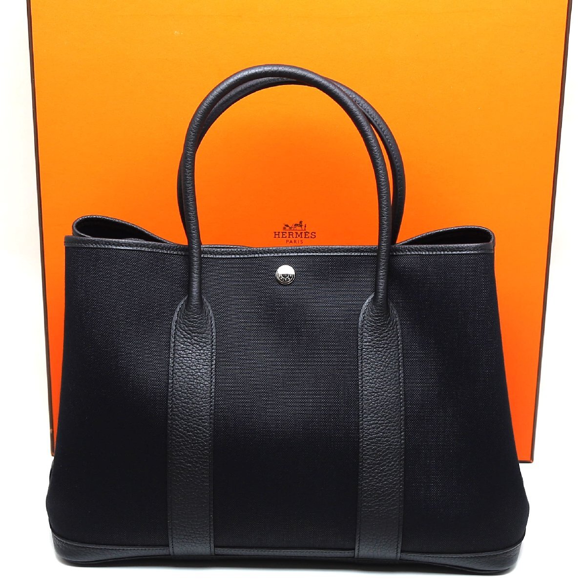 - 新品同様品 エルメス ガーデンパーティPM トワルミリタリー ネゴンダ ブラック 黒 シルバー金具 ハンドバッグ 36 Y刻印