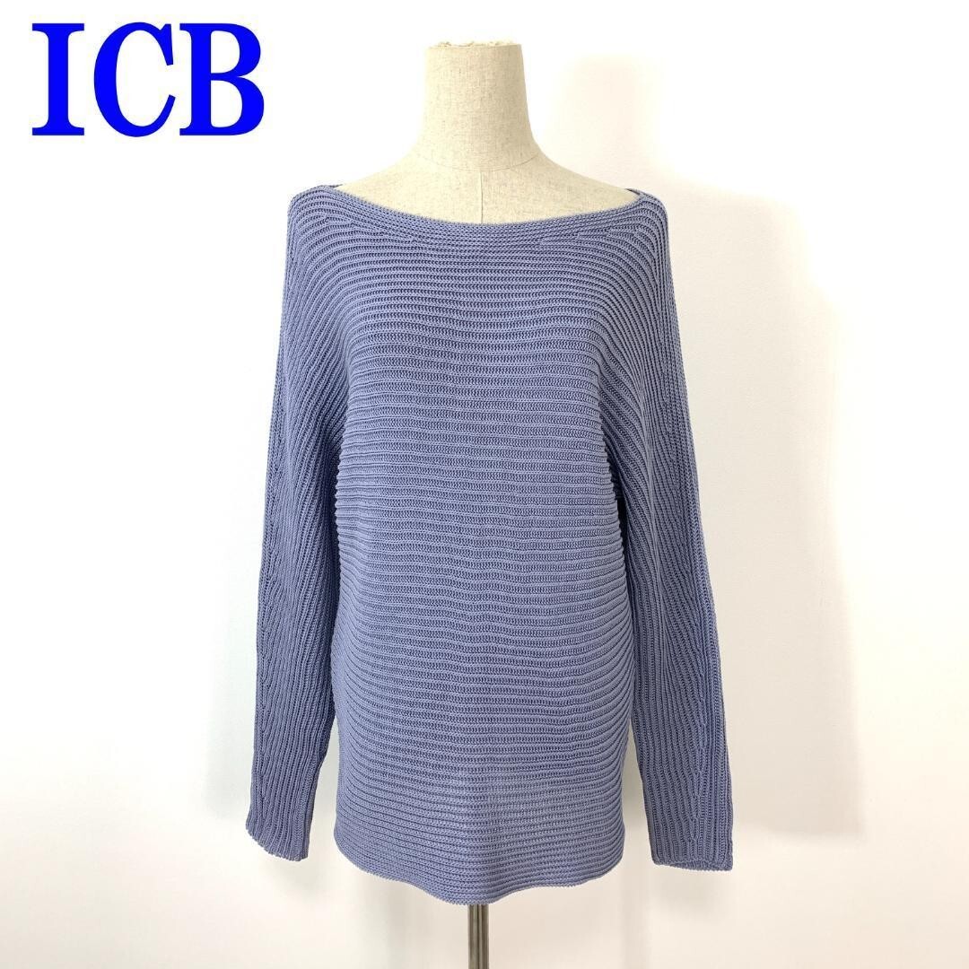 - アイシービー 長袖ニット セーター 綿 コットン ICB ブルー青 S C2066