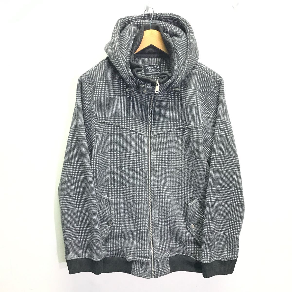 - オシャレなチェック柄◎【CONFIRM】コンファーム フリースジャケット パーカー アウター ライダース ブルゾン お兄系 グレー L /Y26813ii