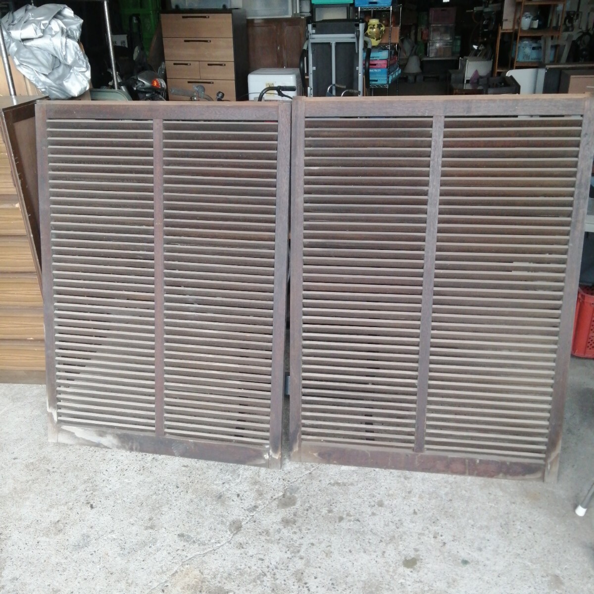 - 佐賀発 計2枚 アンティーク 建具 日差しよけ 木製 たたき入れ 昭和 昔の大工 (約910×1256×30mm)