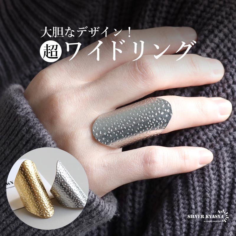 > (シルバー) ステンレス 超ワイドリング 槌目 ニュアンスリング ゴールド 18K GP フリーサイズ 女性 金属アレルギー対応