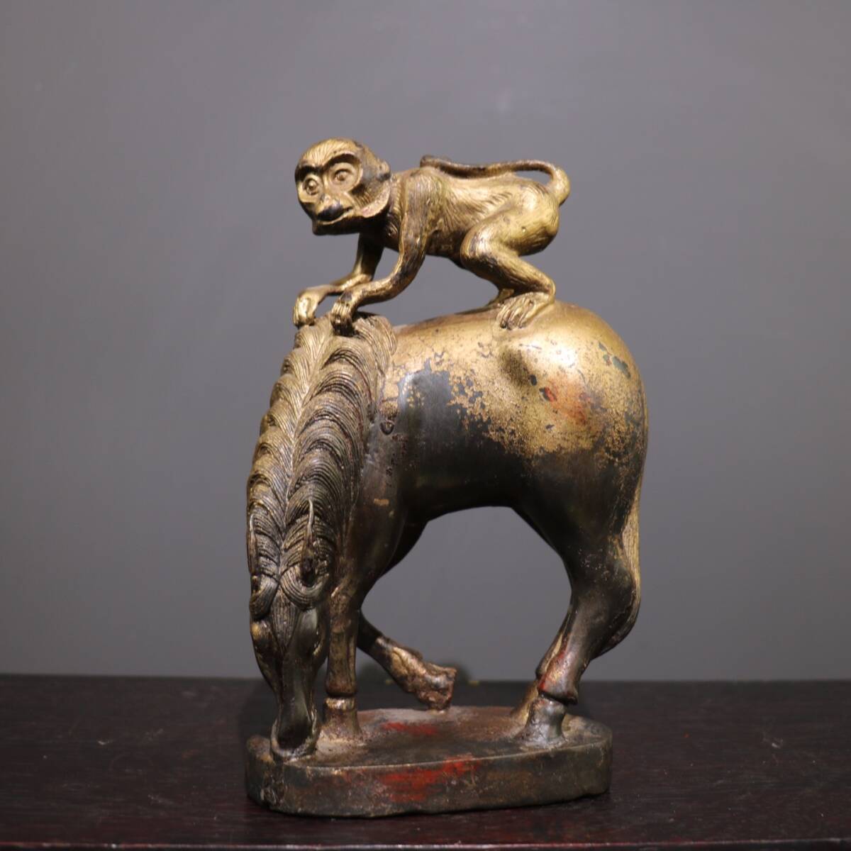 - 【超珍館蔵】銅製 泥金 馬上封侯 置物 古賞物 古美術品 稀少珍蔵品