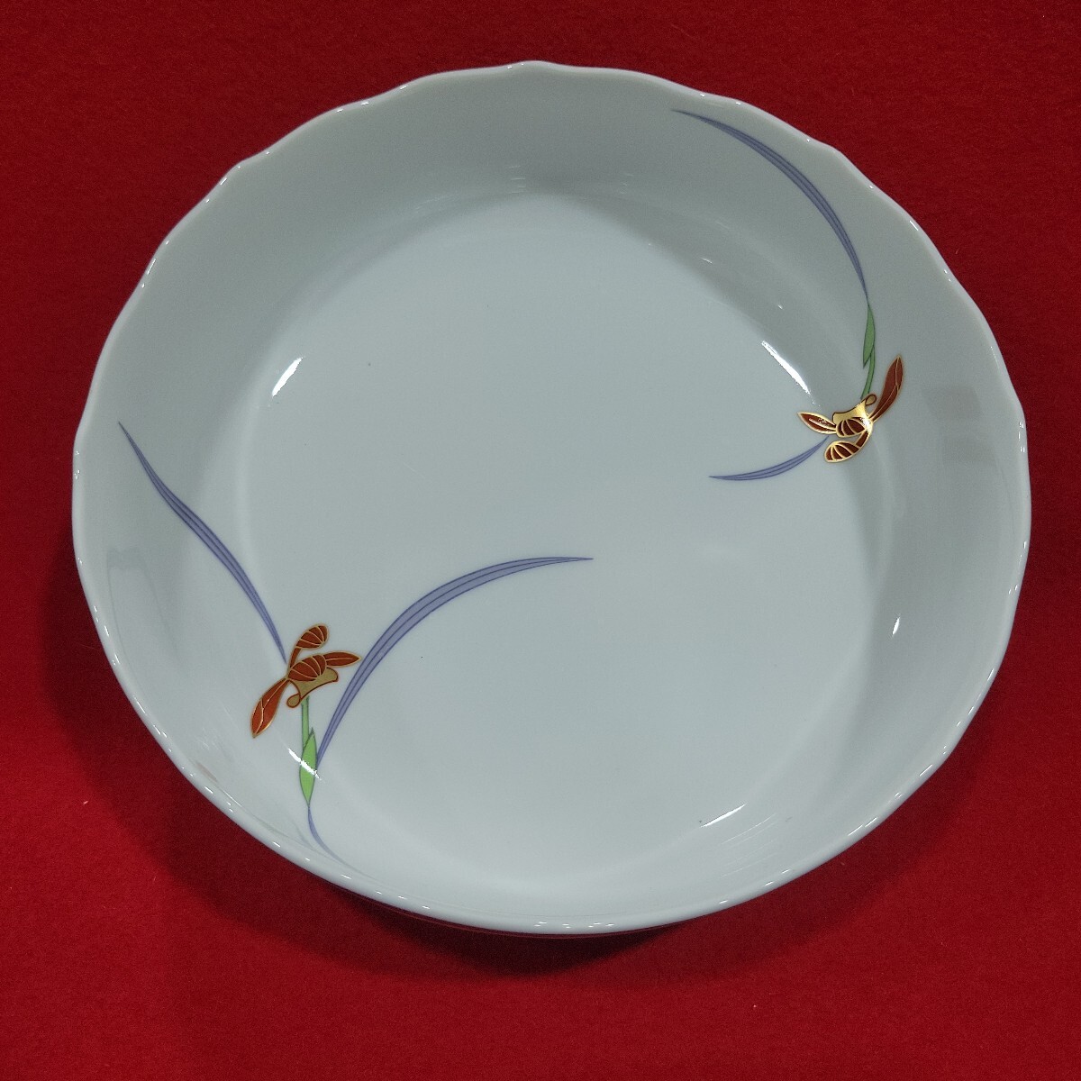 - №8463 中古食器 香蘭社 金彩 蘭紋 オーキッドレース 菓子鉢 口径約18㎝