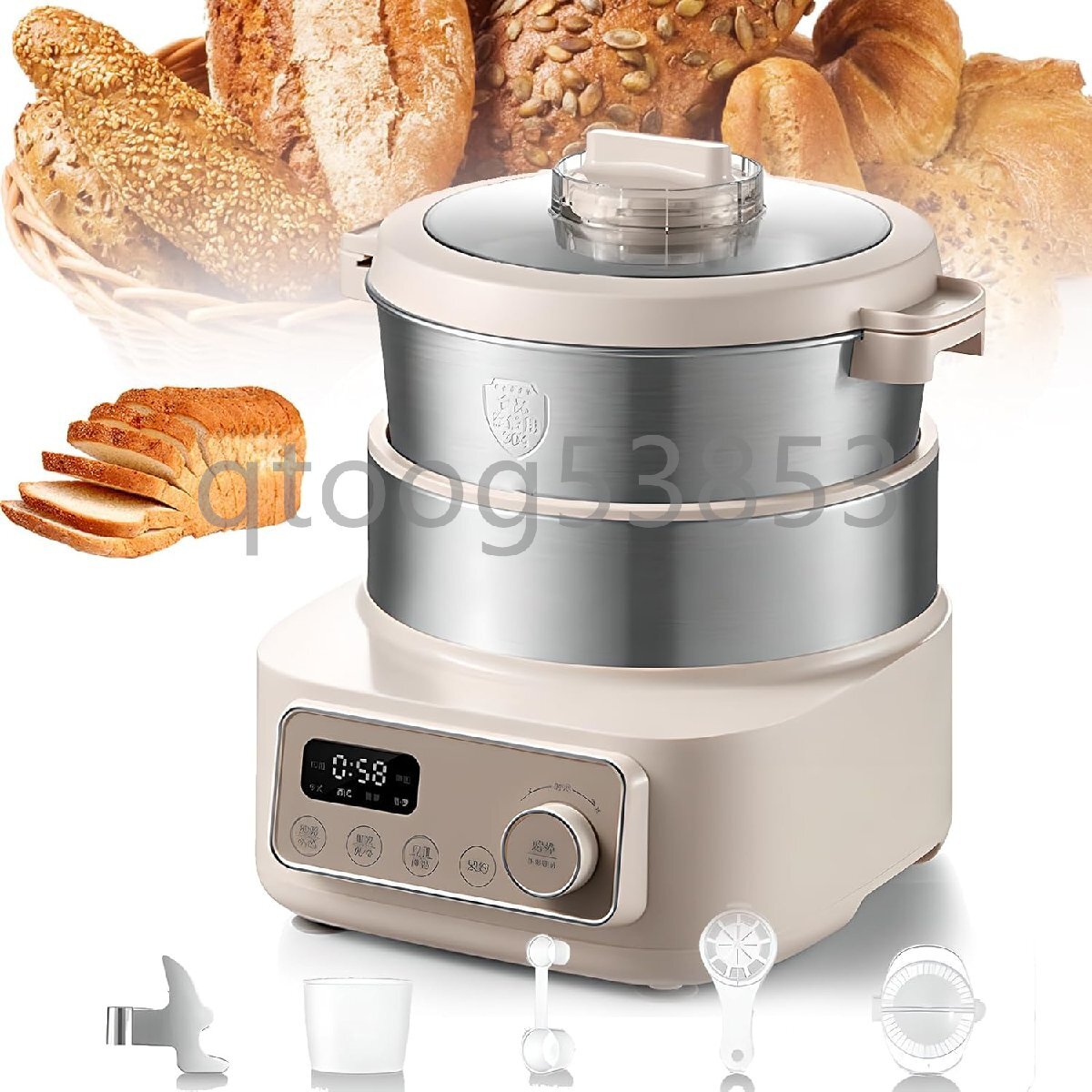 - 5L電気キッチンミキサー、200W混練ミキサー、360°三次元ラップアラウンド加熱、24時間スマート予約、15分の高速混練生地シーター