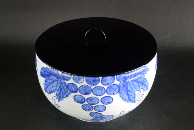 - 茶道具 森岡嘉祥作 呉須葡萄絵水指 於中国景徳鎮