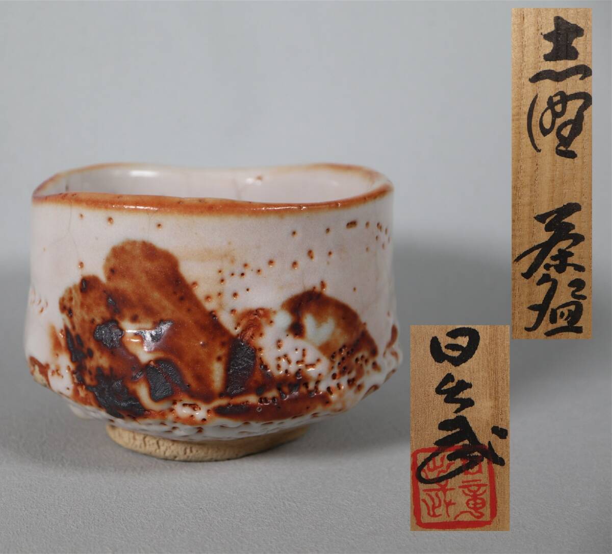 - 安藤日出武 志野 茶碗 共箱 共布 茶道具