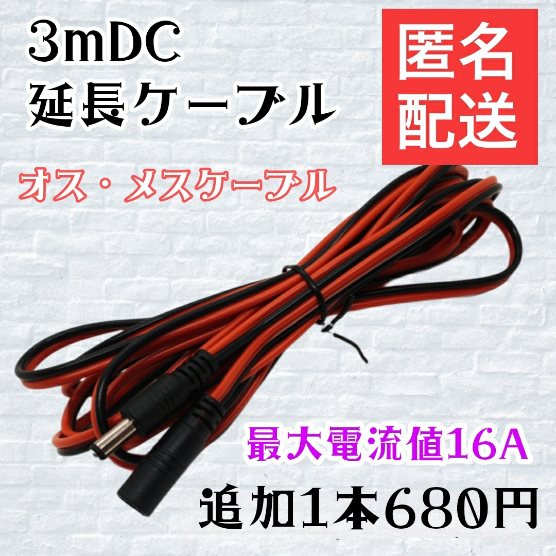 - 3m DC延長コネクタ DC延長ケーブル 5.5mm x 2.1mm LEDライト ソーラーパネル バッテリー 防犯カメラ ACアダプタ等