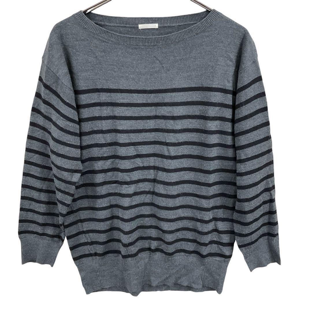 - ジーユー レディースニット グレー M ボーダー柄 カジュアル 定番【473】