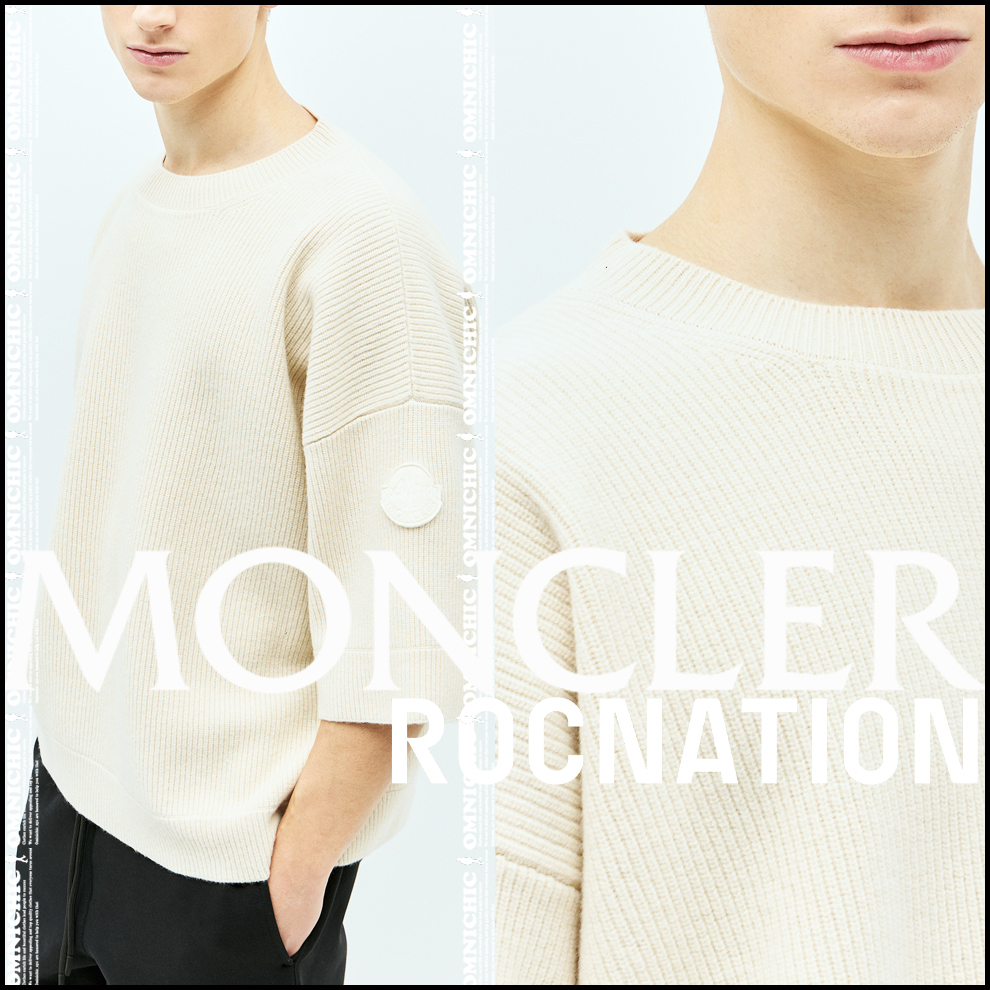 - 清潔感と色気纏うアイボリー■新品149,600円【MONCLER ROCNATION】モンクレールジーニアスロックネイションウール半袖リブニットL/セーター