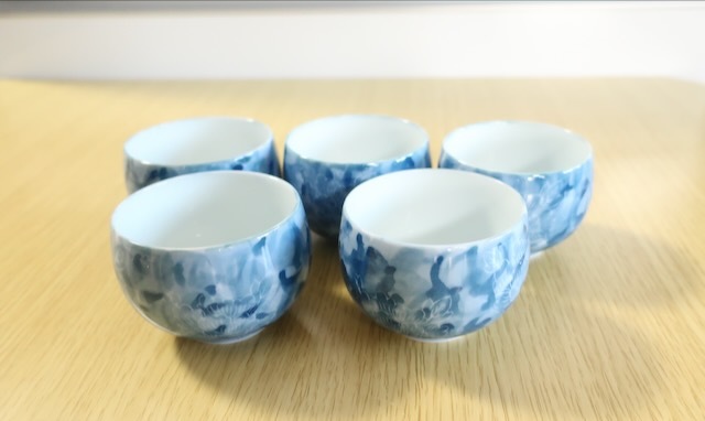 - 有田焼★福山 作・湯呑み5客・未使用 昭和レトロ