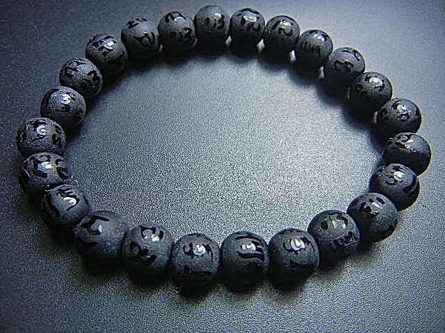 - ★西蔵天珠数珠★JFV3426 黒オニキス 佛字 8mm梵文彫り 超勧め