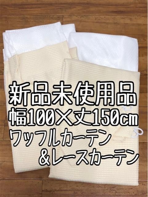 - 新品☆幅100×丈150㎝ワッフル無地シンプルカーテン&レース〇G454