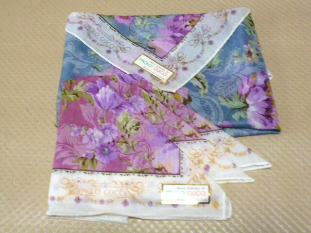 - 昭和レトロ PAOLO GUCCI パオロ・グッチ ピンク系 ブルー系 花柄 ハンカチ 2枚 訳あり