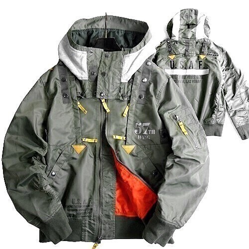 - □AVIREX アヴィレックス 定価3.9万 ナイロン×コットンスウェット ミリタリージャケット MA-1 ブルゾン 3152007 401 2XL▲079▼bus166us