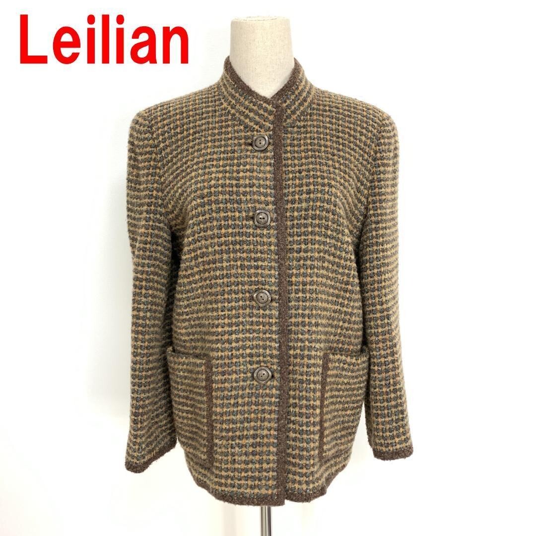 - A5271 レリアン ジャケット ウール 裏地あり Leilian ブラウンチェック 茶色 9