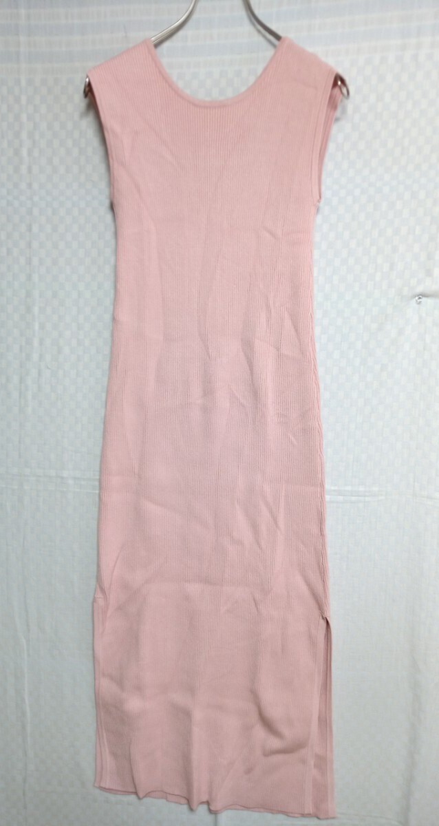 - 11752 ★★ リブノースリーブワンピース サイドスリット入 ピンク系
