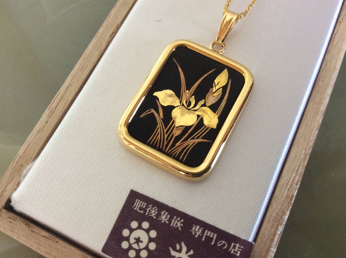 - 即決 美品 肥後象嵌 光助 ペンダント 菖蒲 アヤメモチーフ 黒×金色 レターパック込 アート系商品