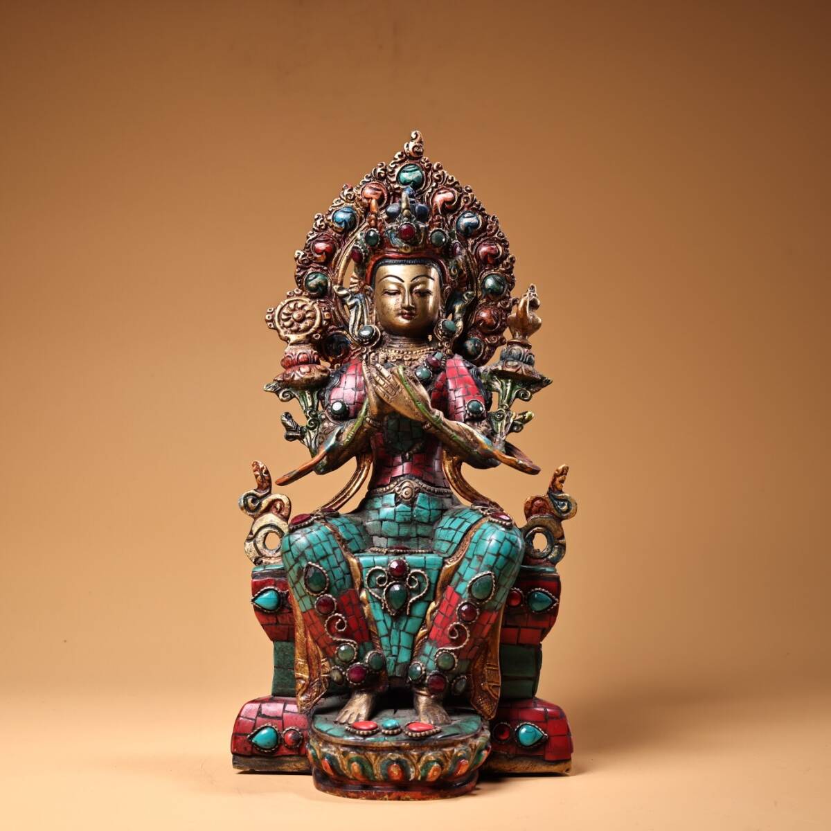 - 『館蔵珍品 銅製 寶石嵌 描金 彩繪 現巴仏』置物 賞物 貴重物品 収蔵品 中国古美術