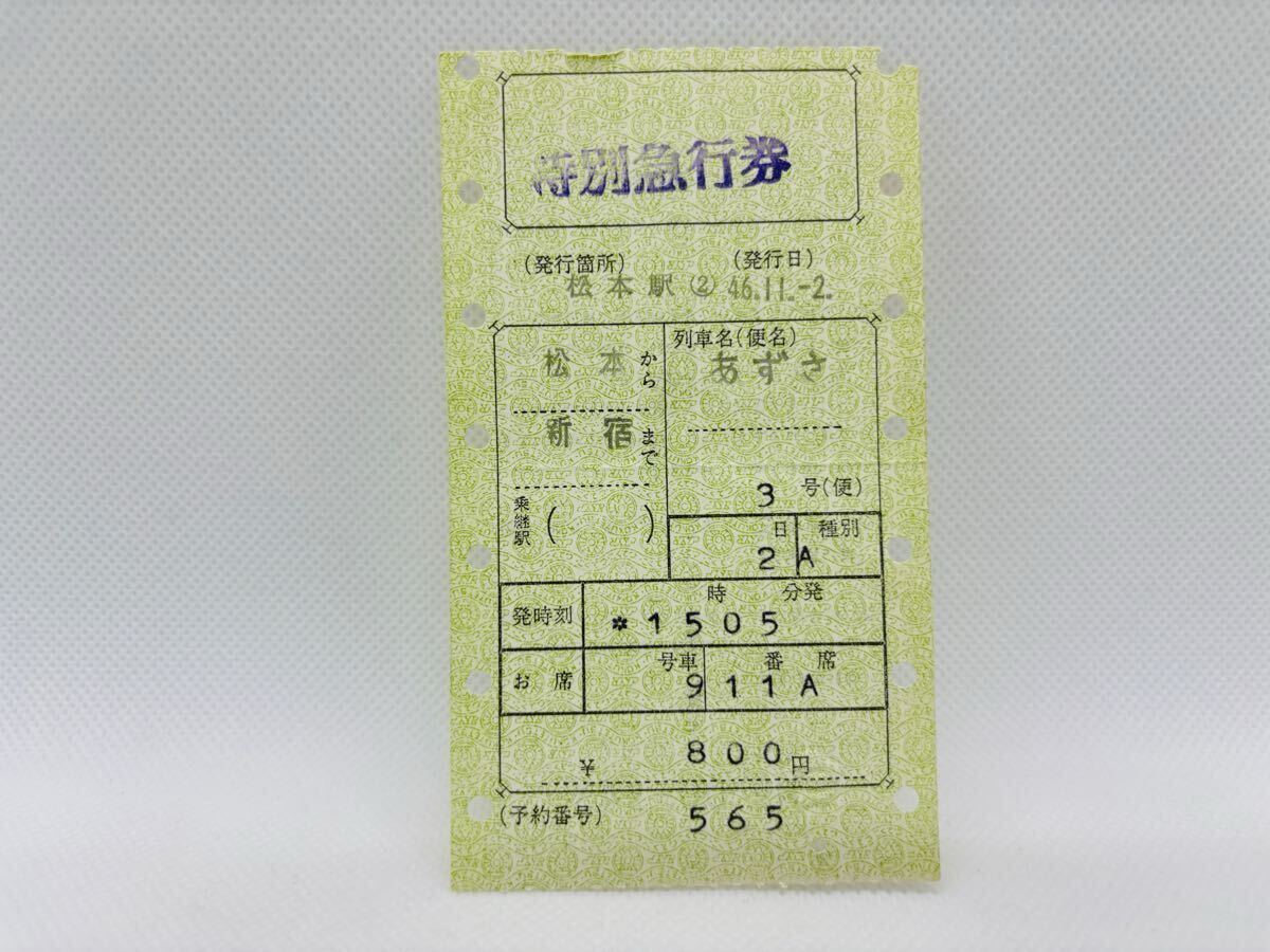 - 国鉄 マルス券 縦型 初期型 特急あずさ3号 松本→新宿 183系 切符 183系 189系 急行券 特急券 昭和レトロ