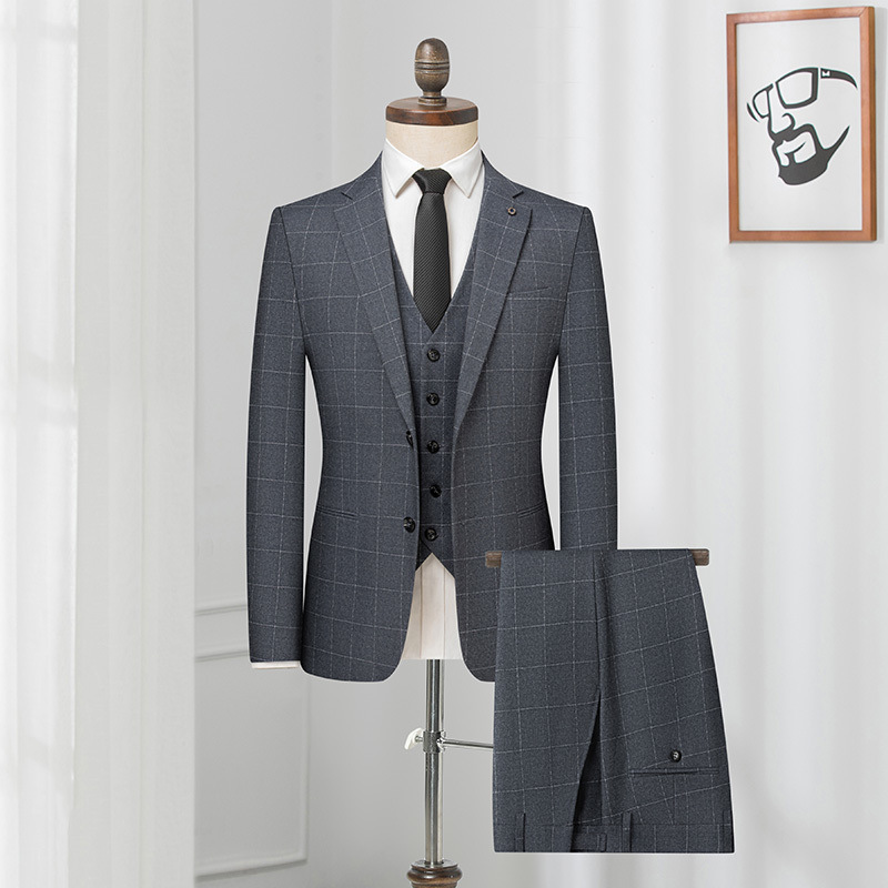 - 人気品上質XL グレー メンズ ビジネス スリーピーススーツ シングルスーツ ジャケット パンツ 紳士 細身 セットアップ 格子柄サイズ選択可