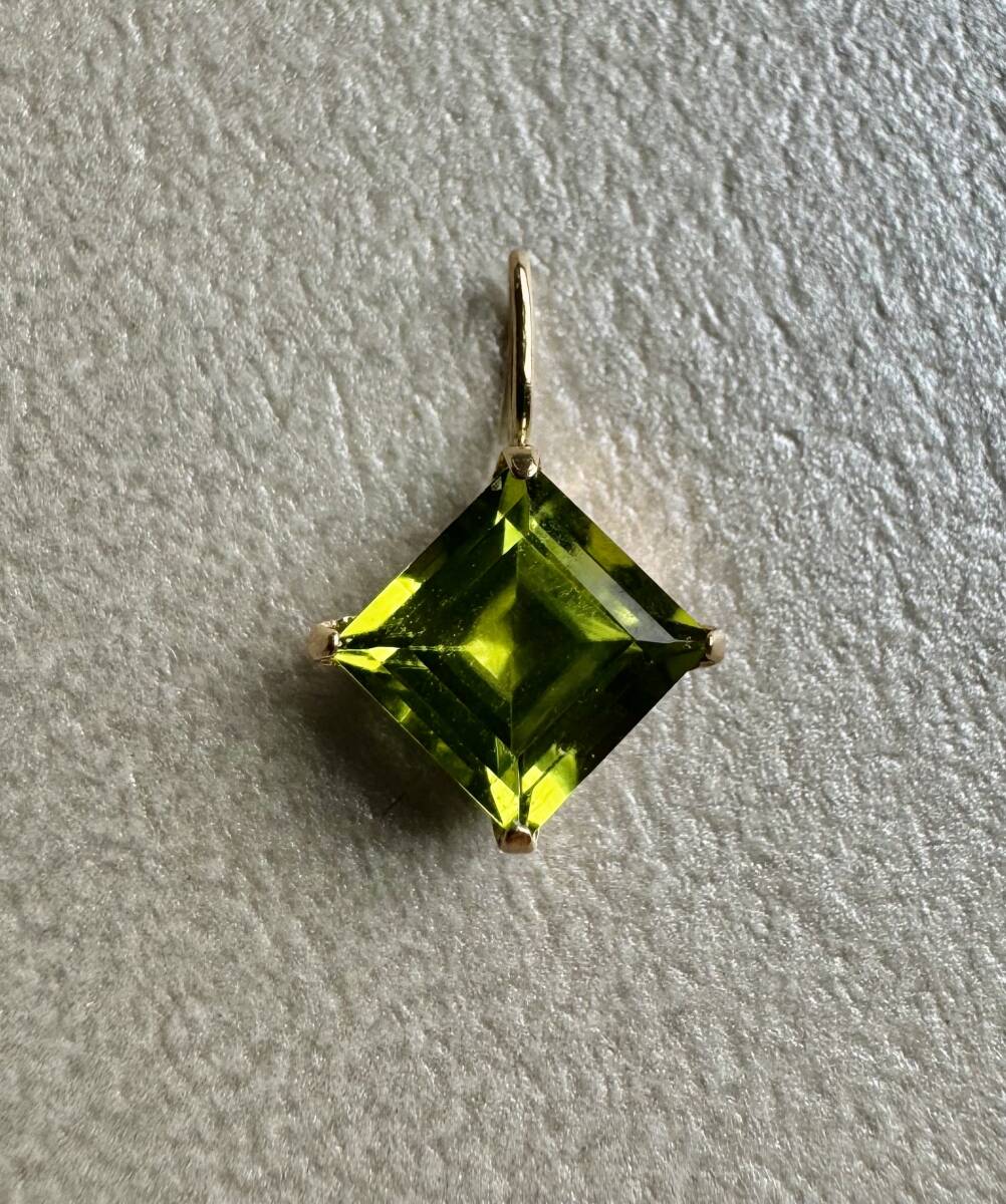 - ペリドット ペンダントトップ K10 6mm角 送料無料