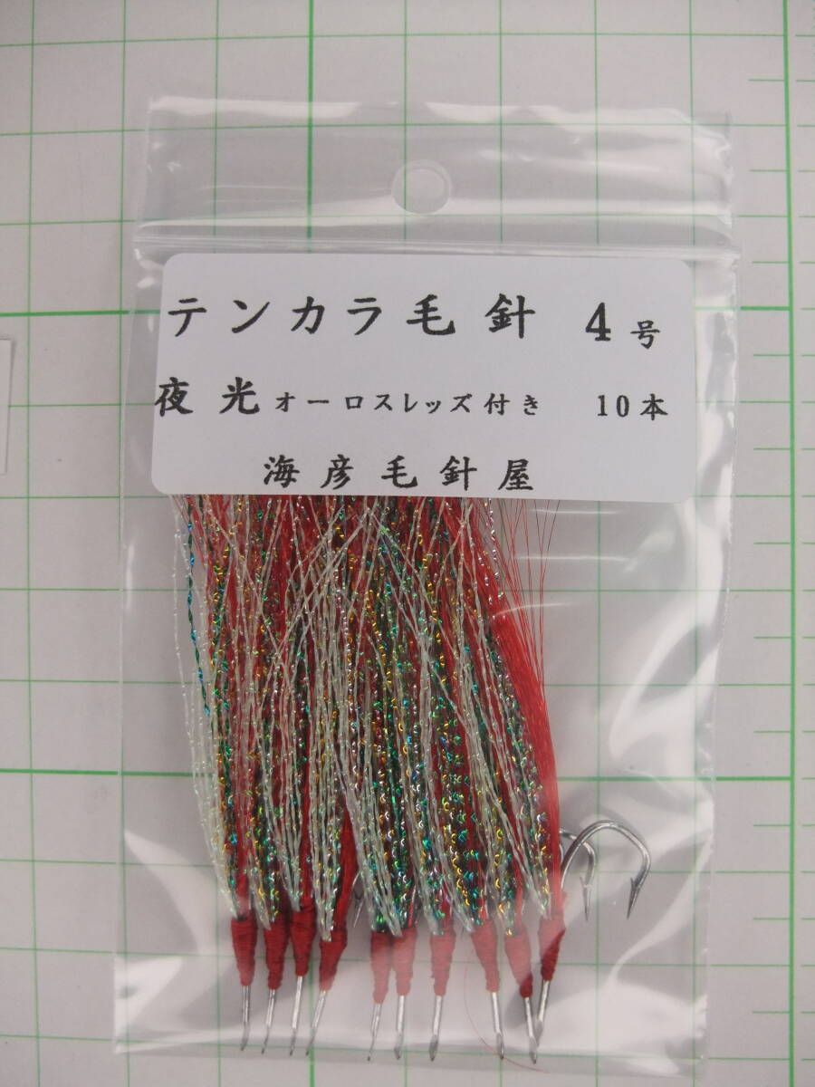 - 4AYOS テンカラ毛針4号 イソ縄毛針 赤フラッシャー 夜光オーロラスレッズ付き 10本セット