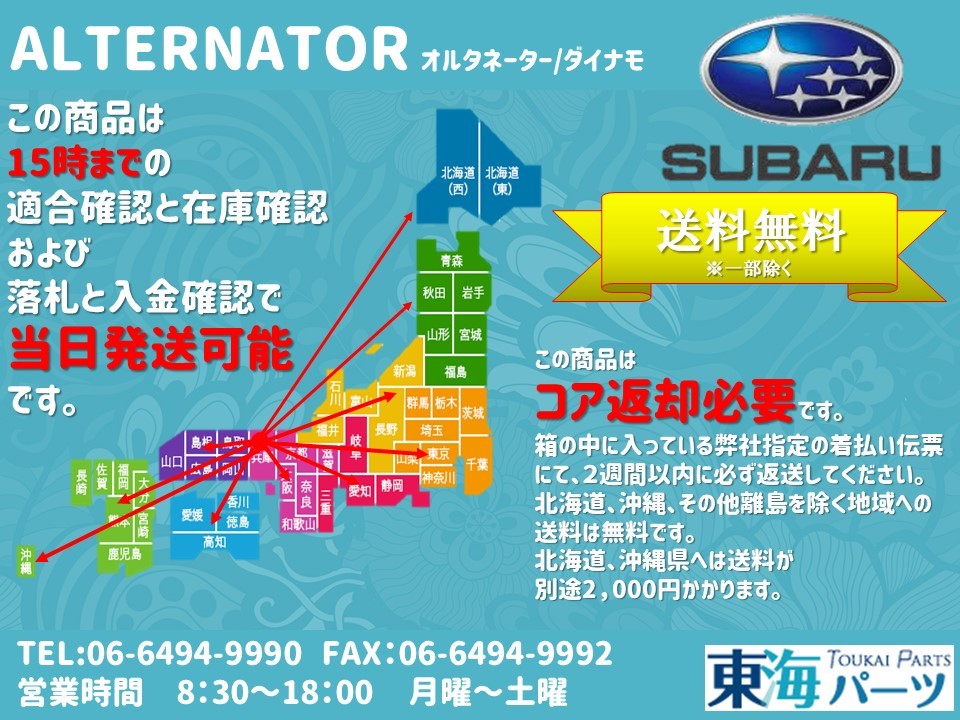> スバル アルシオーネSVX (CXW/CXD)等 オルタネーター ダイナモ 23700-AA190 A3T0 8891 送料無料 保証付き