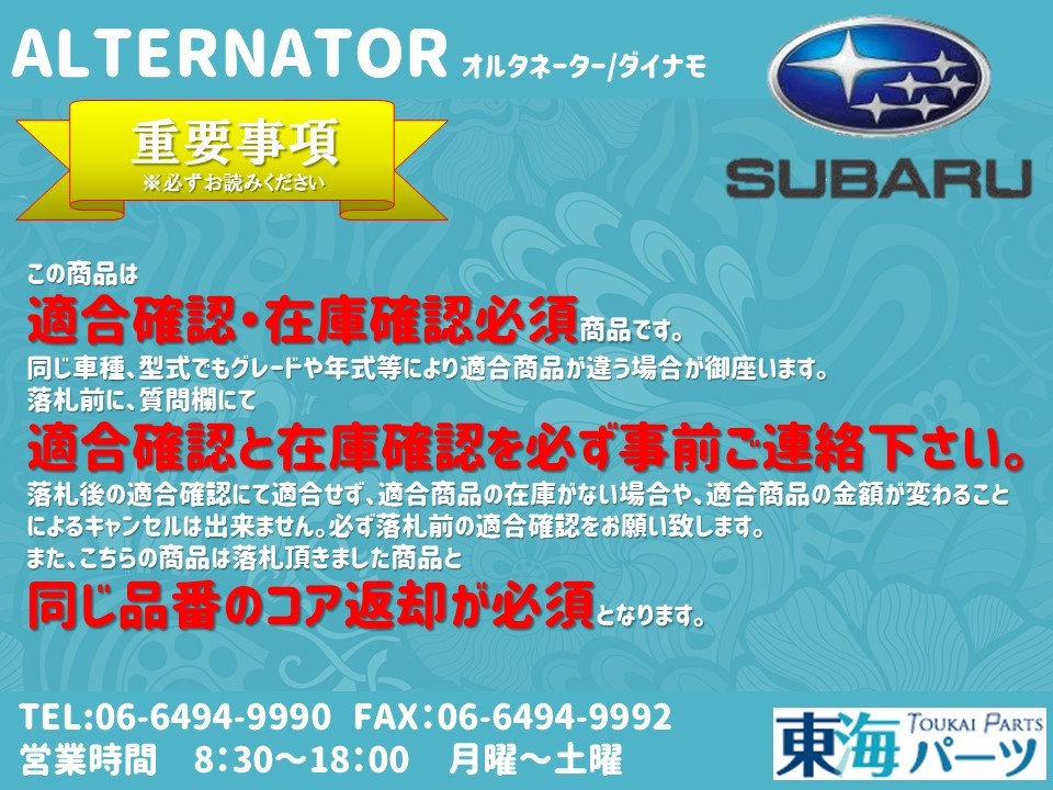 - スバル アルシオーネSVX (CXW/CXD)等 オルタネーター ダイナモ 23700-AA190 A3T0 8891 送料無料 保証付き