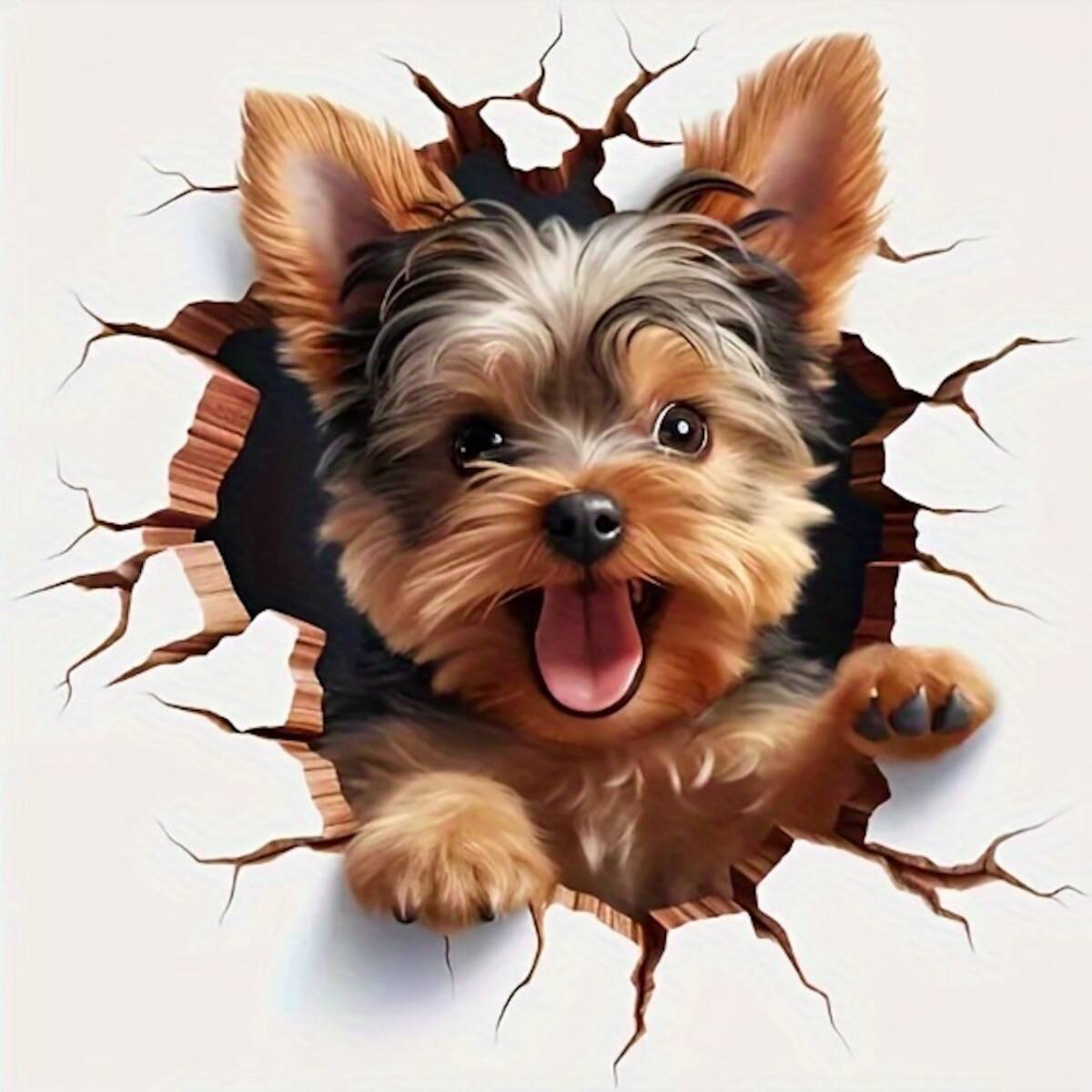 - デカール 子犬 ヨークシャーテリア かわいい 窓用ステッカー 12.5cm おもしろ ひび割れ 飛び出す イヌ ビニール素材 車用 防水 いぬ t5294