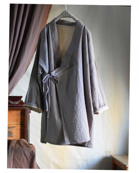 - hmp 25007 カーディガン 袢纏 羽織物 厚手 アウター チュニック トップス アンティーク風 ロマンファッション 綿100%コットン ゆったり灰