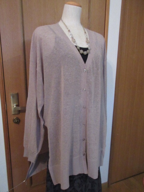 > E)■ブランド品■【coen コーエン】■麻混の様な涼しいシャリ感!綿80%ポリ■袖中心に2本のレースデザイン!ロングカーディガン/ジレ