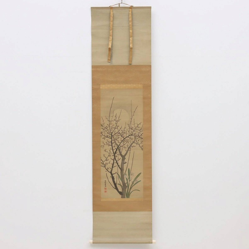- 【真作】東東洋 掛軸 絹本 肉筆 彩色 落款 印有 箱なし 仙台藩の絵師 陸奥 師・狩野梅笑 狩野派 四条派 cd13-9772[TOM]