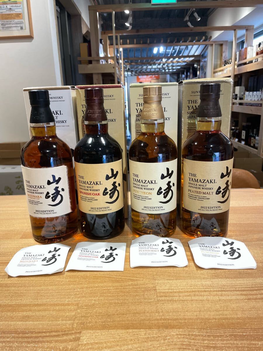 - 4本セット 山崎 2022 エディション ミズナラ スパニッシュオーク パンチョン ピーテッドモルト 48% 700ml 箱不良あり