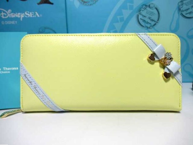 - 送料無料 40%引 サマンサタバサ ラッピング お花 リボン 牛革 ラウンドジップ ファスナー 長財布 イエロー ライトブルー 新品 証明書付