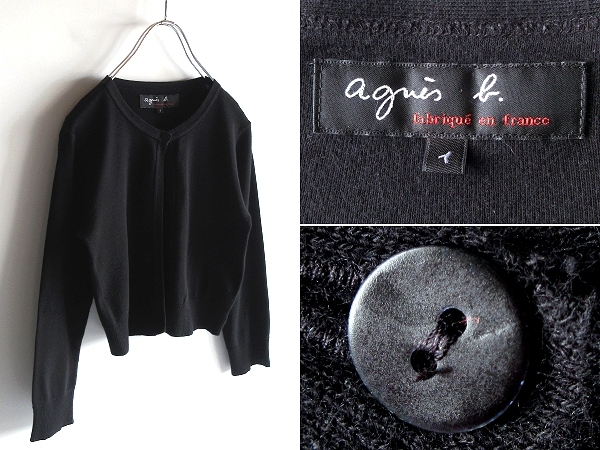 > フランス製 agnes b. アニエスベー J155 コットンフライス リブニット ショート丈 カーディガン 1 ブラック 黒 ネコポス対応