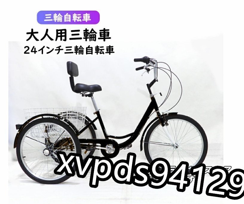 - お見逃しなく!大人用三輪車 24インチ三輪自転車 高齢者用 座席高さ調節可能 アショッピングバスケット付き 自転車 組立品 123