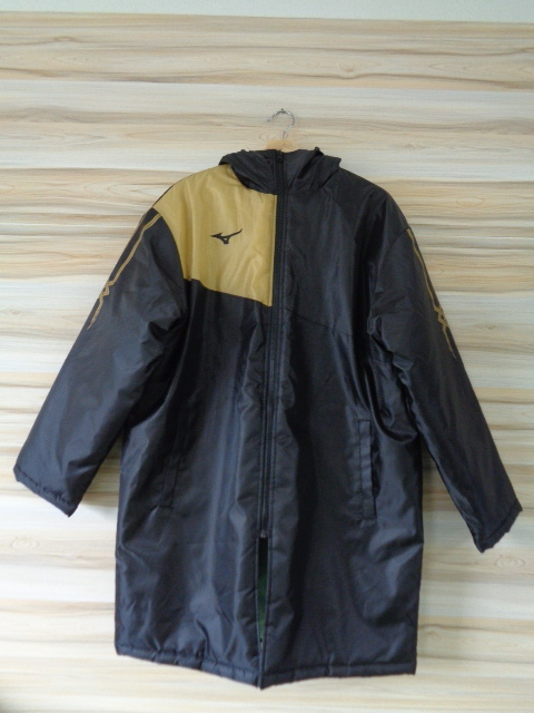 - 2839【本州のみ送料無料】MIZUNO ミズノ 男女兼用アウター ベンチコート 中綿ジャケット ブラック×ゴールド サイズF