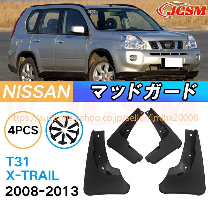 - 泥よけ マッドガード 日産 エクストレイル T31系 年式 2008-2013 オフロード 前後 4枚セット キズ防止 黒 未塗装 mud170-ss04