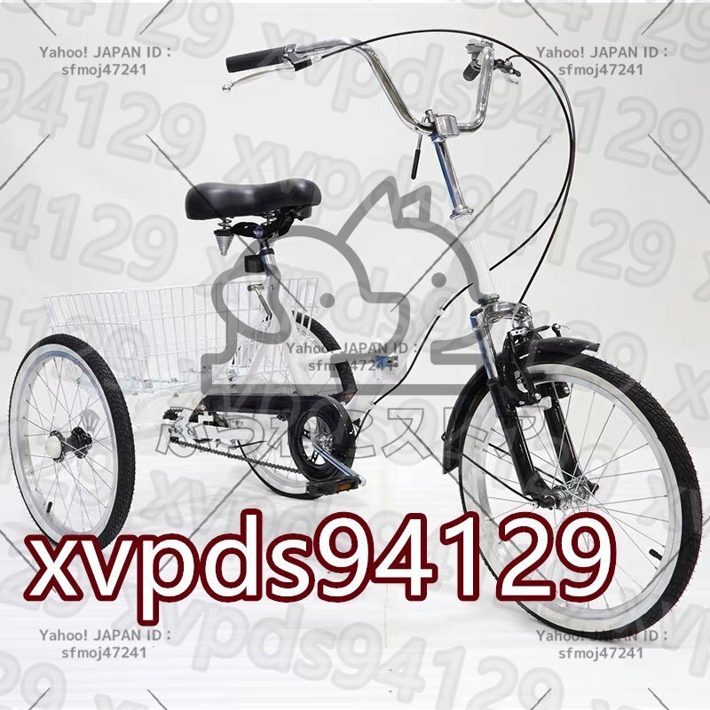 - 特売★品質保証 ホワイト 20インチ 折り畳み式 三輪自転車 人気新品 高齢者用 リ座席高さ調節可能 買い物かご付き 便利 大人用 3輪自転車