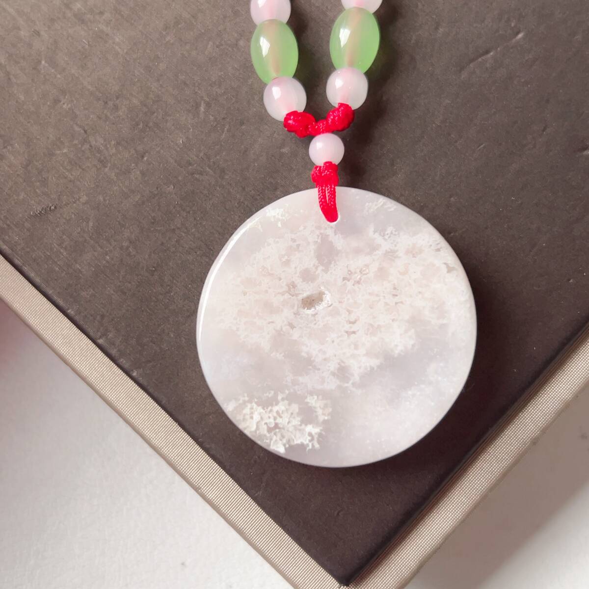 - 訳あり◇桜瑪瑙(チェリーブロッサムアゲート)◇ネックレス◇ペンダント◇無事プレート(無事牌)◇お守り◇天然石◇プレゼントにも020P3153