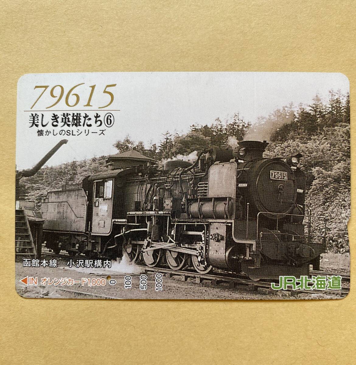 > 【使用済】 オレンジカード JR北海道 SL 79615 美しき英雄たち ⑥ 懐かしのSLシリーズ 函館本線 小沢駅構内