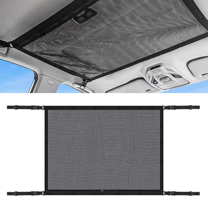- 車用 車内天井専用ネット 二重タイプ ラゲッジネット ファスナー付き 天井収納 荷崩れ防止 収納スペース拡大 (77cm×52cm)